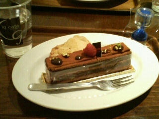 水曜の仕事帰りに行ったカフェで食べたケーキです。(ベリー系のチョコケーキ)